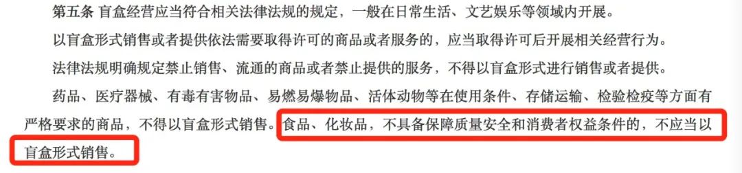 不过,在昨日发布的《规范》中,已去掉对特殊化妆品禁止以盲盒形式销售的规定,而是调整为不具备保障质量安全和消费者权益条件的化妆品,不应当以盲盒形式销售。